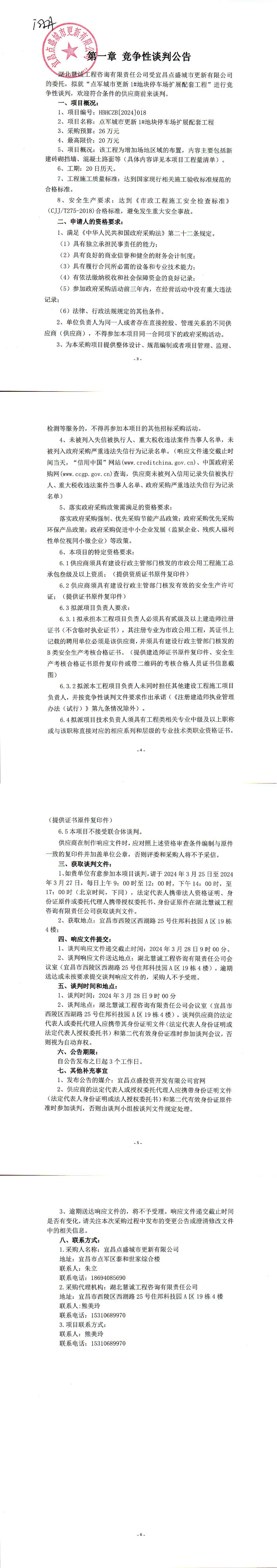 点军城市更新1#地块停车场扩展配套工程竞争性谈判公告