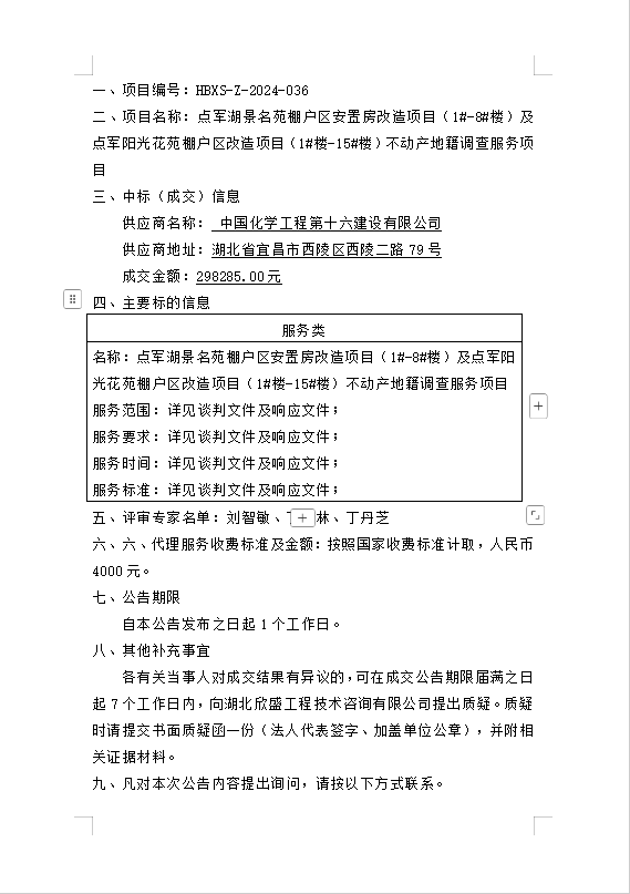 点军湖景名苑棚户区安置房改造项目(1#-8#楼)及点军阳光花苑棚户区改造项目(1#楼-15#楼)不动产地籍调查服务项目成交公告